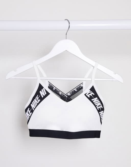 Nike Training – Indy – Vit sportbehå med tejpade detaljer med logga och stöd för lågintensiv träning