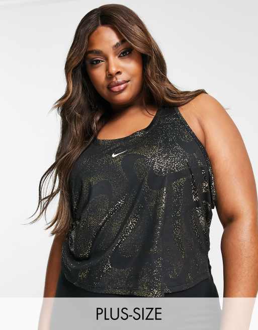 Nike Training – Plusstorlek – One Dri-FIT – Svart linne med glittrigt tryck
