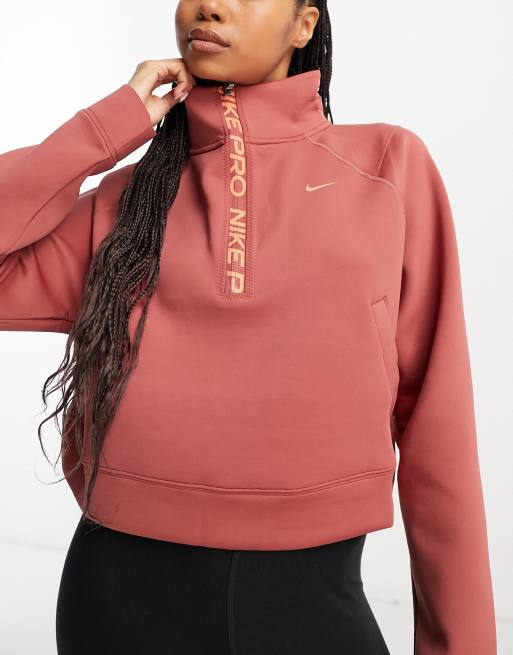 Nike Training – Pro Femme – Dri-FIT – Rosa topp med halv dragkedja