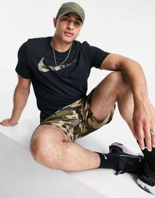 Nike – Training – Svart t-shirt med kamouflagemönstrad Swoosh-logga