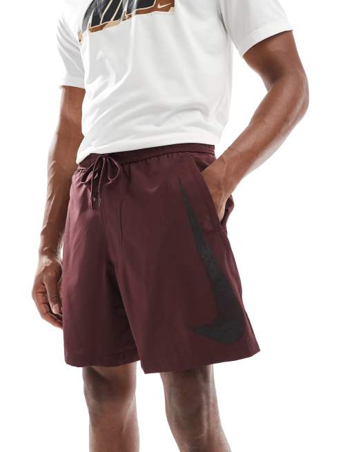 Nike Training – Vinröda shorts med swoosh-tryck och 7 tum innersöm