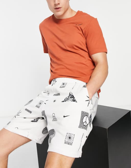 Nike – Yoga Festival – Naturvita mönstrade shorts i fransk frotté och bomull