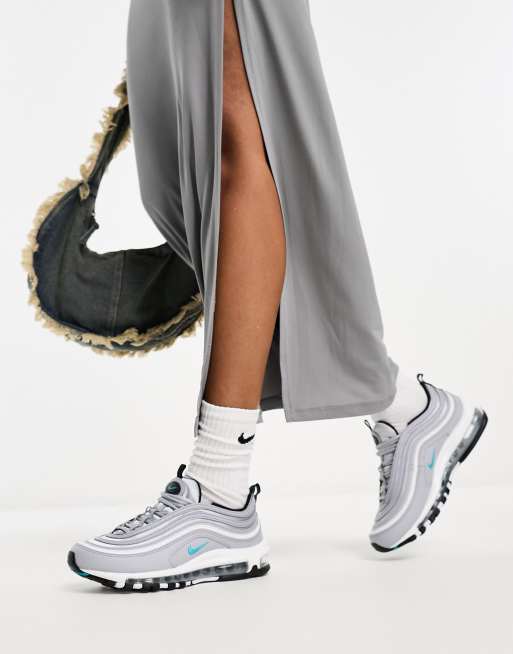 Nike – Air Max 97 – Silverfärgade och blågrå sneakers med satin