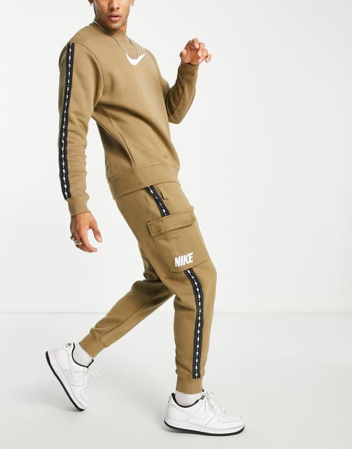 Nike – Brungrå mjukisbyxor med cargofickor och banddetaljer med upprepad logga