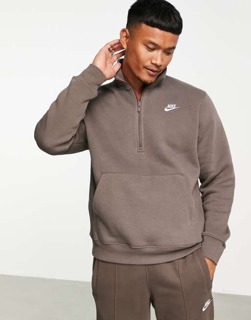 Nike – Club – Gråbrun sweatshirt med kort dragkedja