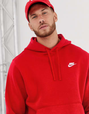 Nike – Club – Rött set med shorts och huvtröja
