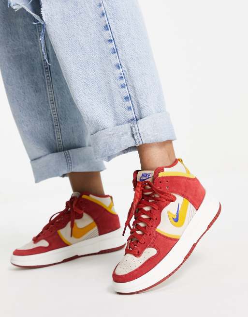 Nike – Dunk High Up – Sandfärgade och kanelröda sneakers