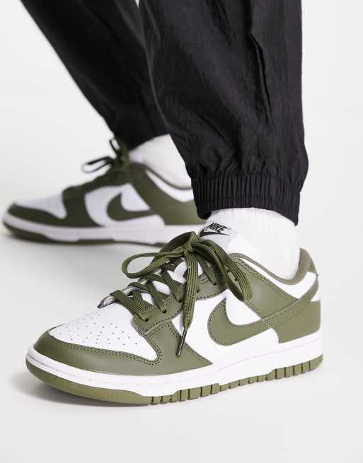 Nike – Dunk – Vita och olivfärgade sneakers med lågt skaft