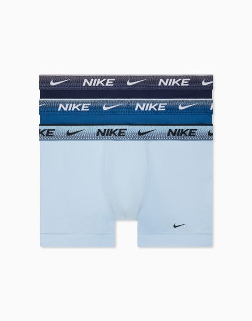 Nike – Essential – Blå trunks i bomull med tonade midjeband, 3-pack