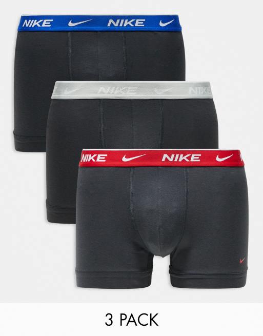 Nike – Everyday – Blå, grå och röda trunks i stretchig bomull med färgade midjeband, 3-pack