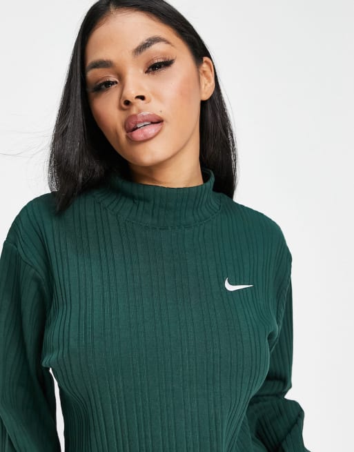 Nike – Grönt set i ribbad jersey med liten Swoosh-logga