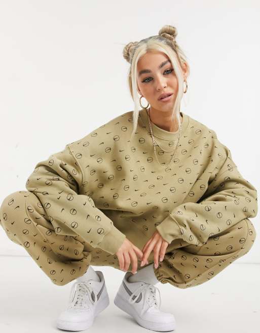 Nike – Kamelfärgad kort sweatshirt med heltäckande logga