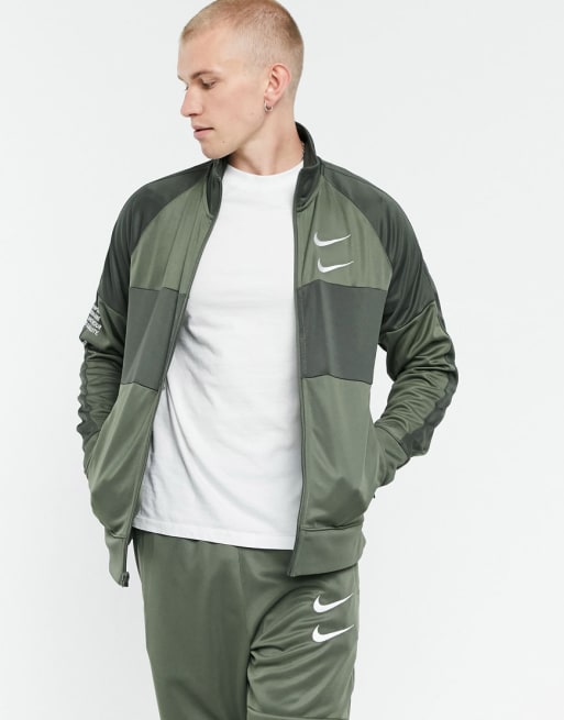 Nike – Khakifärgad träningsoverall i stickad polyester med Swoosh-logga