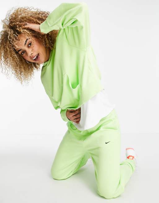 Nike – Neongröna tvättade mjukisbyxor med hög midja
