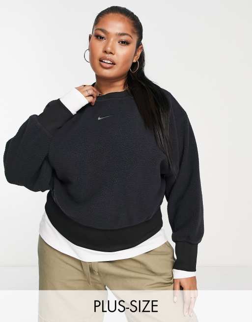 Nike Plus – Svart, kort sweatshirt med rund halsringning i plysch