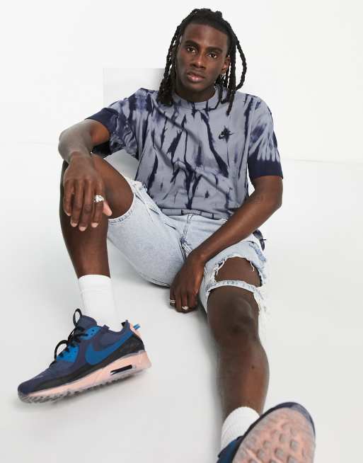 Nike – Premium – Essentials – Grå, batikfärgad, ledig t-shirt med sänkt axelsöm