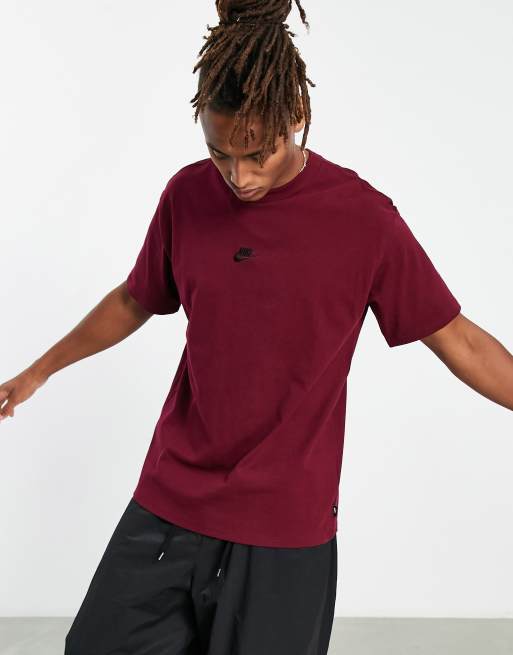 Nike – Premium Essentials – Mörkt rödbetsröd t-shirt i kraftigt material