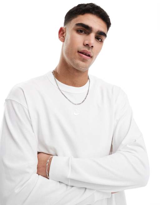 Nike – Premium – Essentials – Vit t-shirt i oversize med långa ärmar