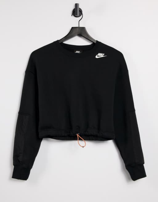 Nike – Svart kort sweatshirt med dragsko i midjan