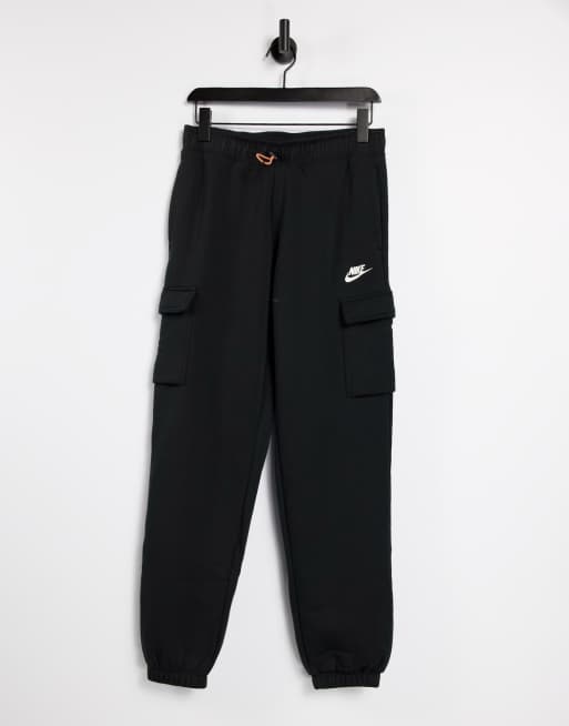 Nike – Svarta cargobyxor i fleece med ledig passform