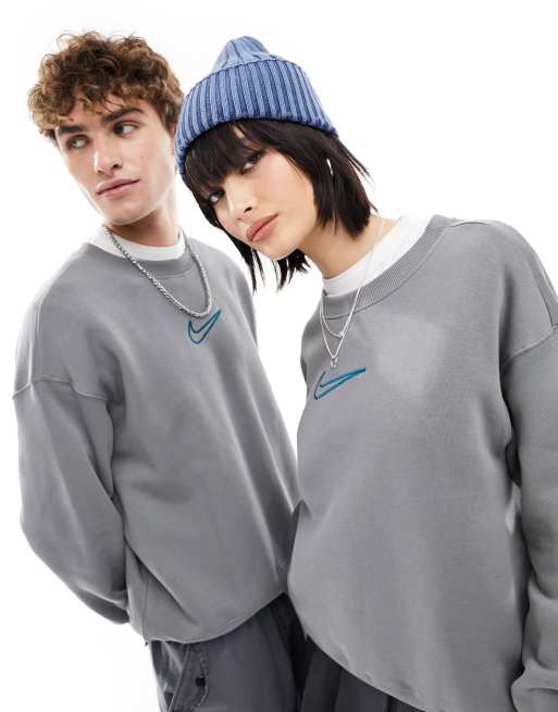 Nike – Unisex – Mörkgrå sweatshirt med medelstor swoosh-logga