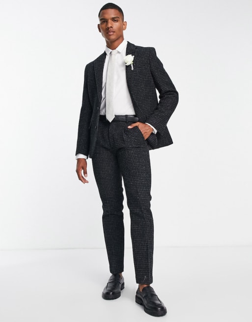Noak – Harris – Svart, hundtandsmönstrad, smal kostym i tweed