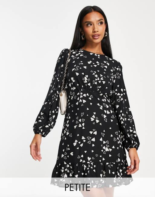 Nobody's Child Petite – Serena – Svart, hjärtmönstrad tea-klänning i minilängd