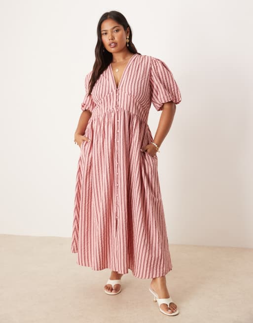 Nobody's Child Plus – Starlight – Rosarandig midiklänning med puffärmar