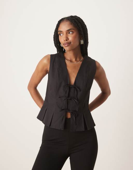 Nobody's Child – Ezia – Svart kostymväst med knytband framtill