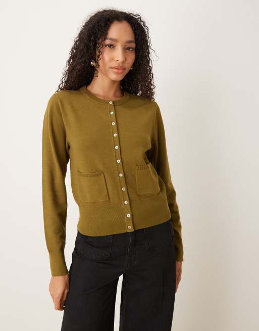 Nobody's Child – Grön, tätstickad kofta med rund halsringning
