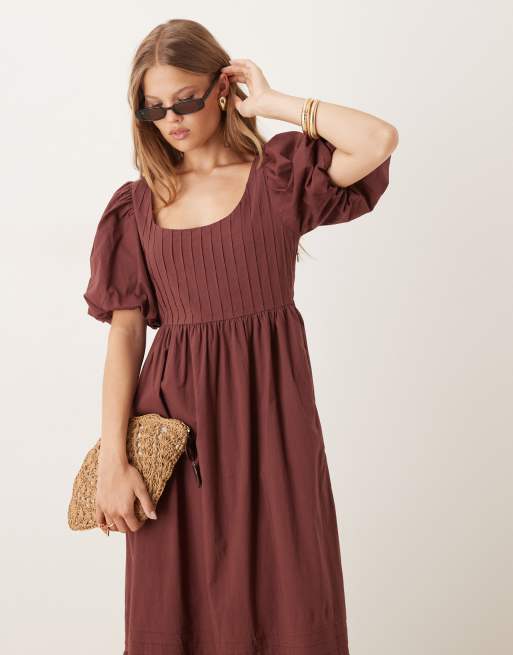 Nobody's Child – Mimi – Brun midiklänning med puffärmar