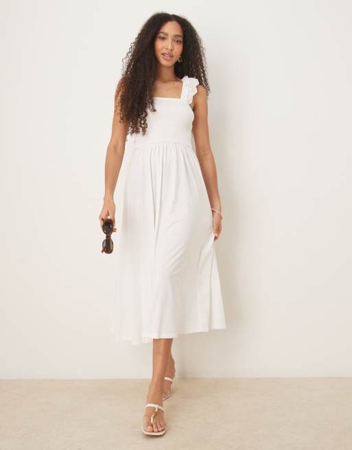 Nobody's Child – Rita – Vit midiklänning i broderie anglaise med volang på axel