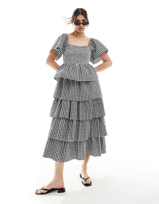 Nobody's Child –Rosalia – Svart och vit, panelsydd midaxiklänning med ginghamrutigt mönster