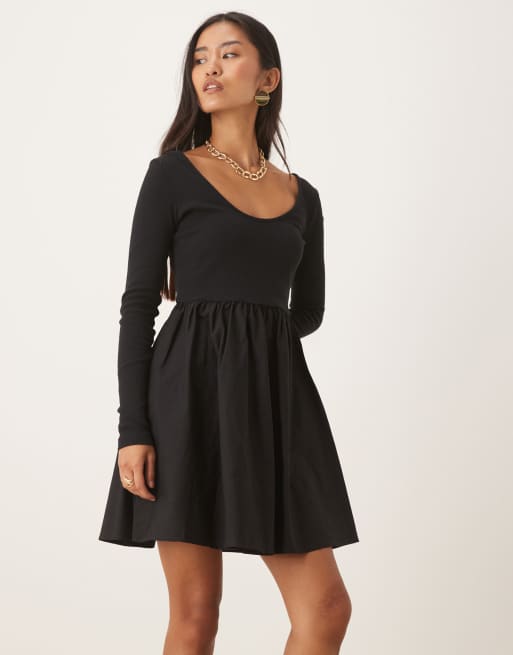 Nobody's Child – Svart miniklänning med långa ärmar och djup halsringning