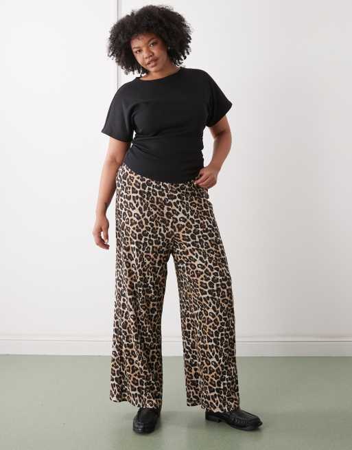 Noisy May Curve – Leopardmönstrade, ribbade byxor med vida ben