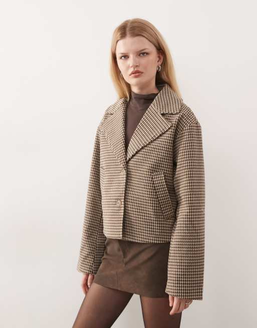 Noisy May – Beige, hundtandsmönstrad jacka med boxig passform