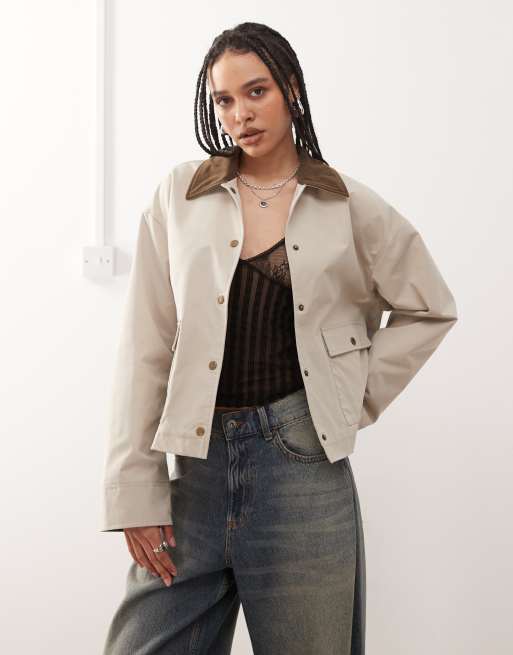 Noisy May – Beige, lätt jacka med kontrastfärgad krage