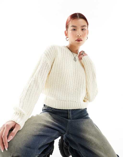 Noisy May – Gräddvit hålstickad tröja