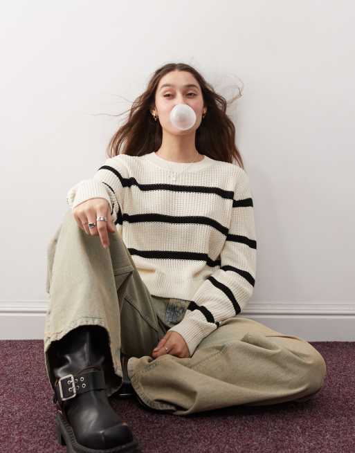 Noisy May – Gräddvit- och svartrandig tröja med rund halsringning