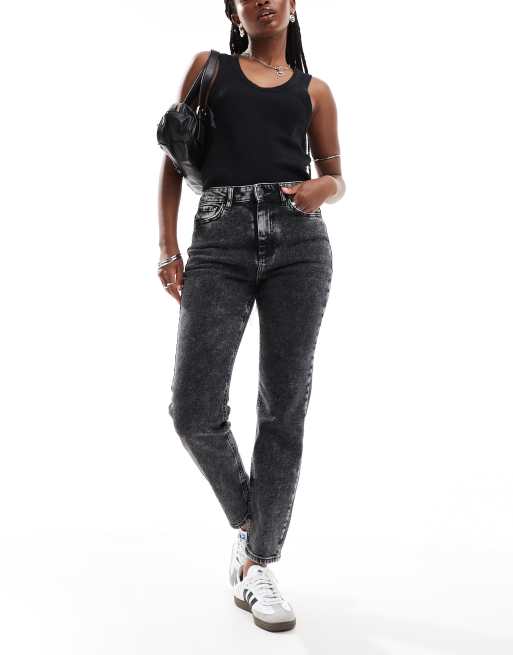 Noisy May – Moni – Mörkgrå raka jeans med hög midja och smal passform