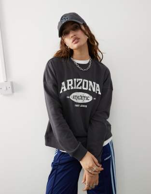 Noisy May – Mörkgrå sweatshirt i collegestil