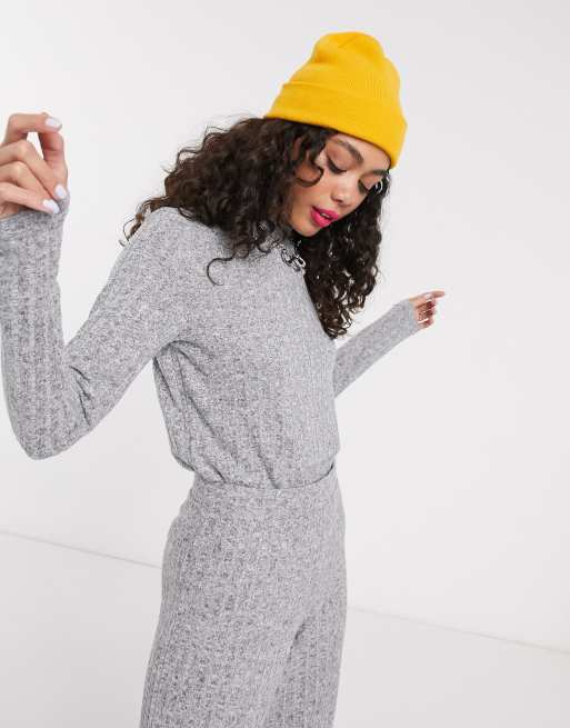 Noisy May – Ribbstickad topp med hög krage, del av set