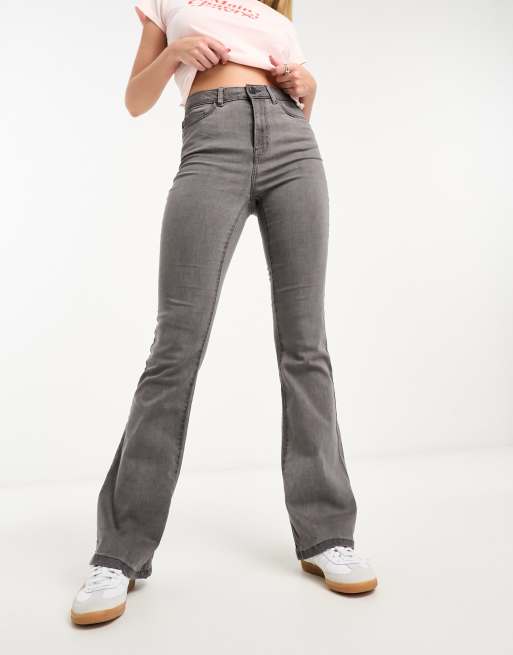 Noisy May – Sallie – Ljusgrå, utsvängda jeans med hög midja