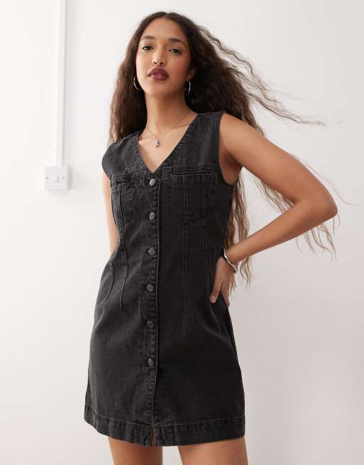 Noisy May - Svart, tvättad miniklänning i kostymvästdesign av denim