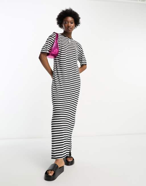 Noisy May – Svartvit lång t-shirtklänning med ränder