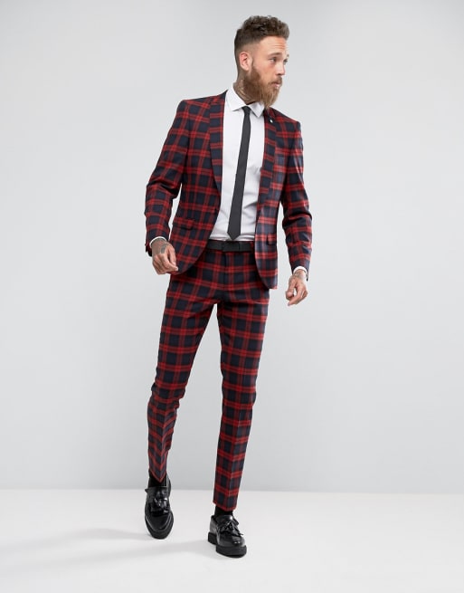Noose & Monkey Rutig kostym med supersmal passform