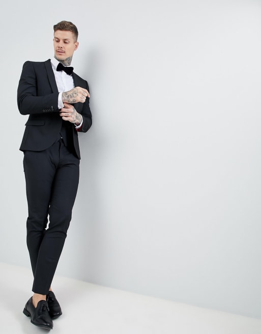 Noose & Monkey Svart kostym i ullblandat tyg med extra smal passform