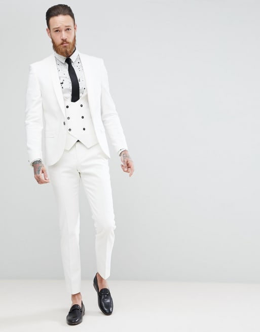 Noose & Monkey Vit kostym i ullblandat tyg med extra smal passform
