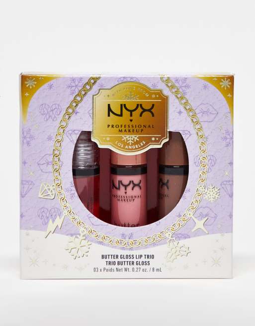NYX Professional Makeup – Butter Gloss Trio – Gåvoset med tre läppglans - Sugar Glass, Creme Brulee & Cinnamon Roll (Spara 13%)