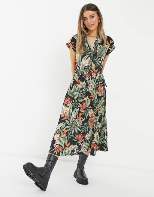Oasis – Palmmönstrad plisserad skjortklänning i midilängd